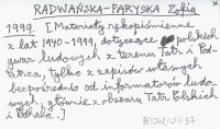 RADWAŃSKA-PARYSKA Zofia 1999 [Materiały rękopiśmienne z lat 1940-1999, dotyczące polskich gwar ludowych z terenu Tatr i Podtatrza, tylko z zapisów własnych bezpośrednio od informatorów ludowych, głównie z obszaru Tatr Polskich i Podhala.]
