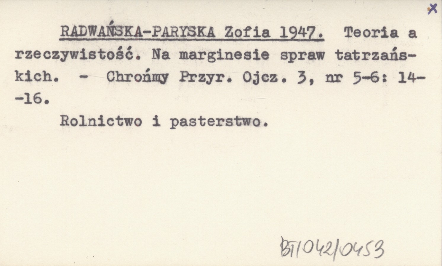 RADWAŃSKA-PARYSKA Zofia 1947 Teoria a rzeczywistość. Na marginesie spraw tatrzańskich.