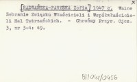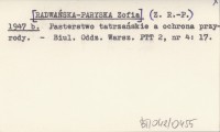 (Z. R.-P.) [RADWAŃSKA-PARYSKA Zofia] 1947 b Pasterstwo tatrzańskie a ochrona przyrody.