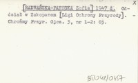 [RADWAŃSKA-PARYSKA Zofia] 1947 e Oddział w Zakopanem [Ligi Ochrony Przyrody].