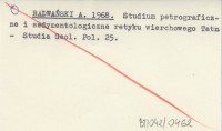 RADWAŃSKI A. 1968 Studium petrograficzne i sedymentologiczne retyku wierchowego Tatr.