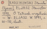 ELJASZ Stanisław [RADZIKOWSKI Stanisław Eljasz-] 1891 O Tatrach w ogólności.