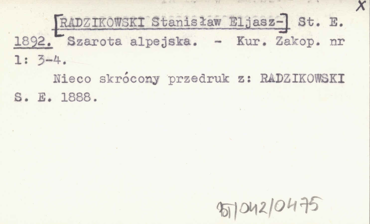 St. E. [RADZIKOWSKI Stanisław Eljasz-] 1892 Szarota alpejska.