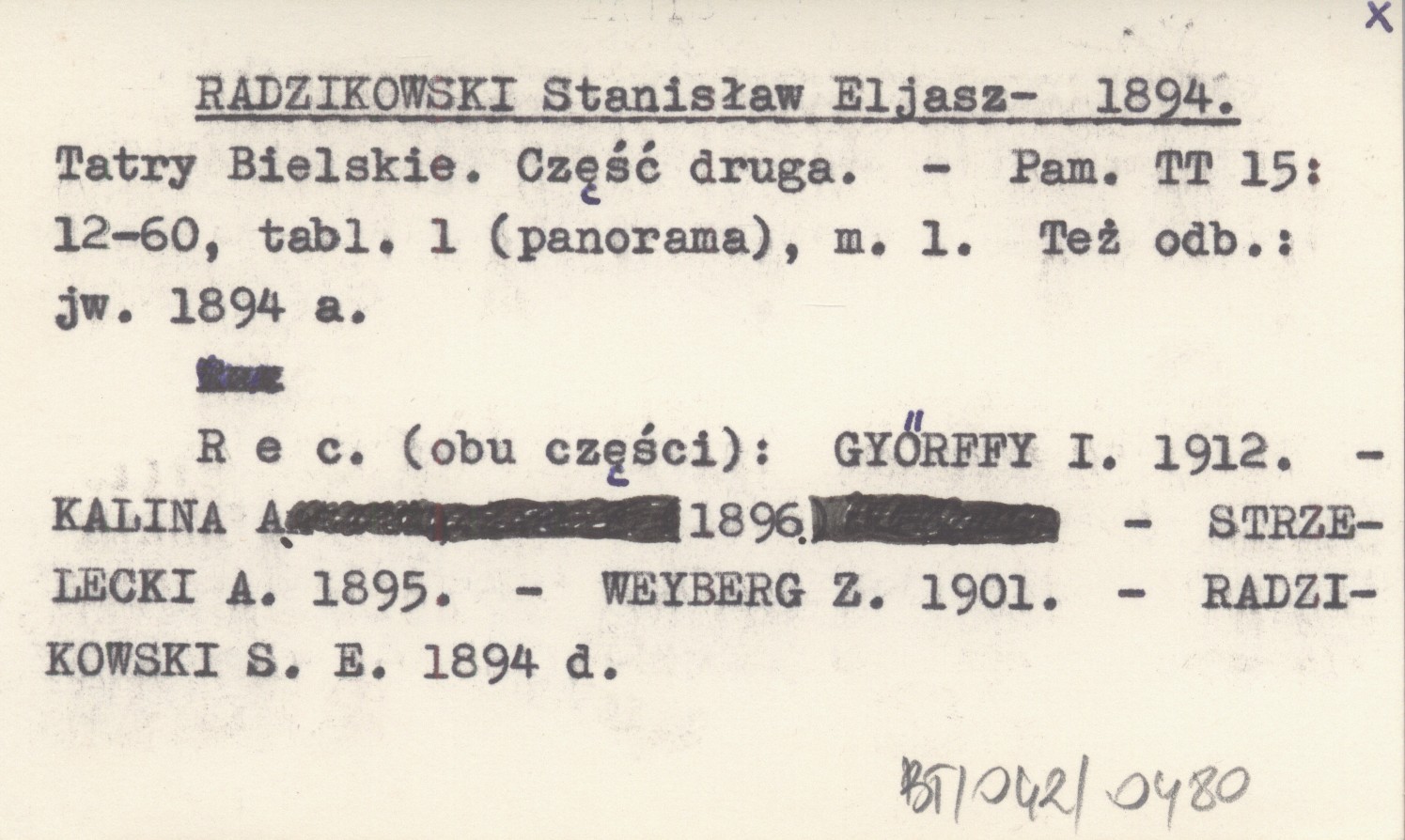 RADZIKOWSKI Stanisław Eljasz- 1894 Tatry Bielskie. Część druga.