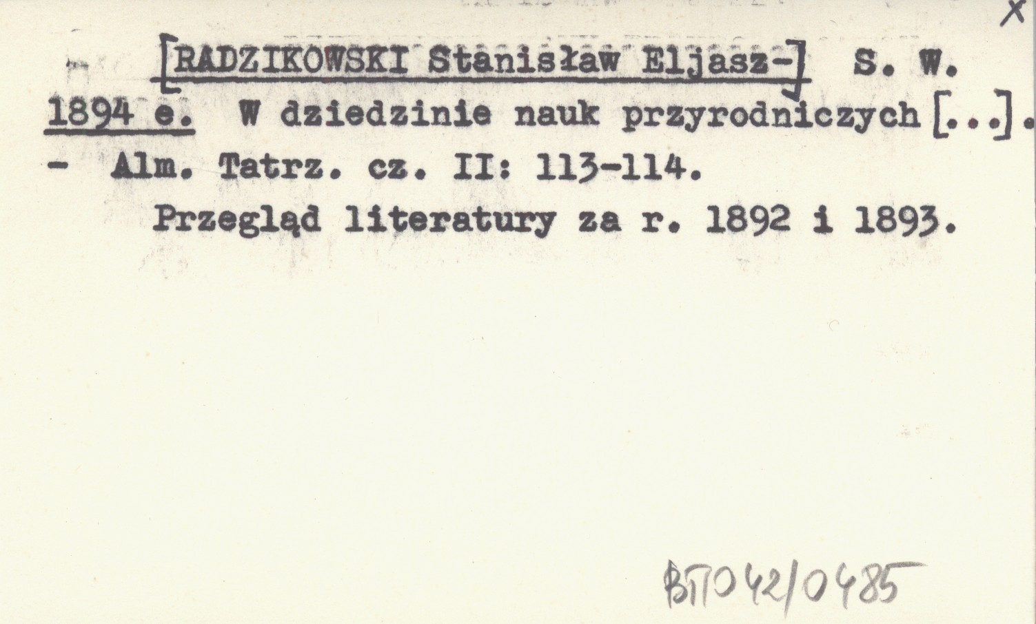 S. W. [RADZIKOWSKI Stanisław Eljasz-] 1894 e W dziedzinie nauk przyrodniczych [...].