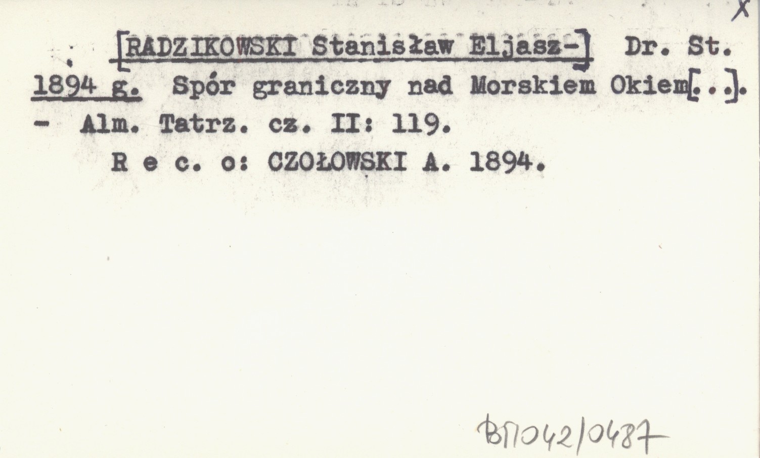 Dr. St. [RADZIKOWSKI Stanisław Eljasz-] 1894 g Spór graniczny nad Morskiem Okiem [...].