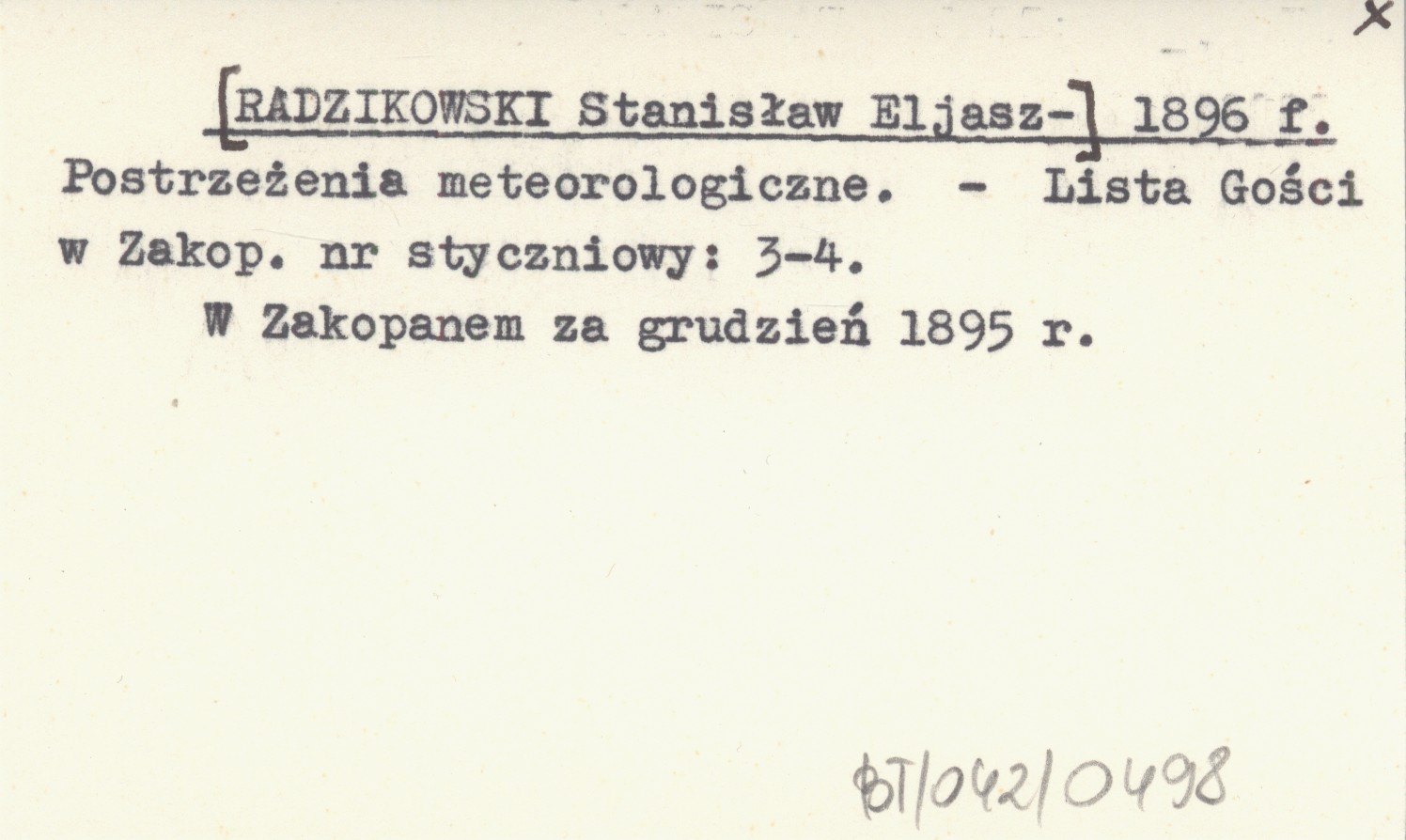 [RADZIKOWSKI Stanisław Eljasz-] 1896 f Postrzeżenia meteorologiczne.