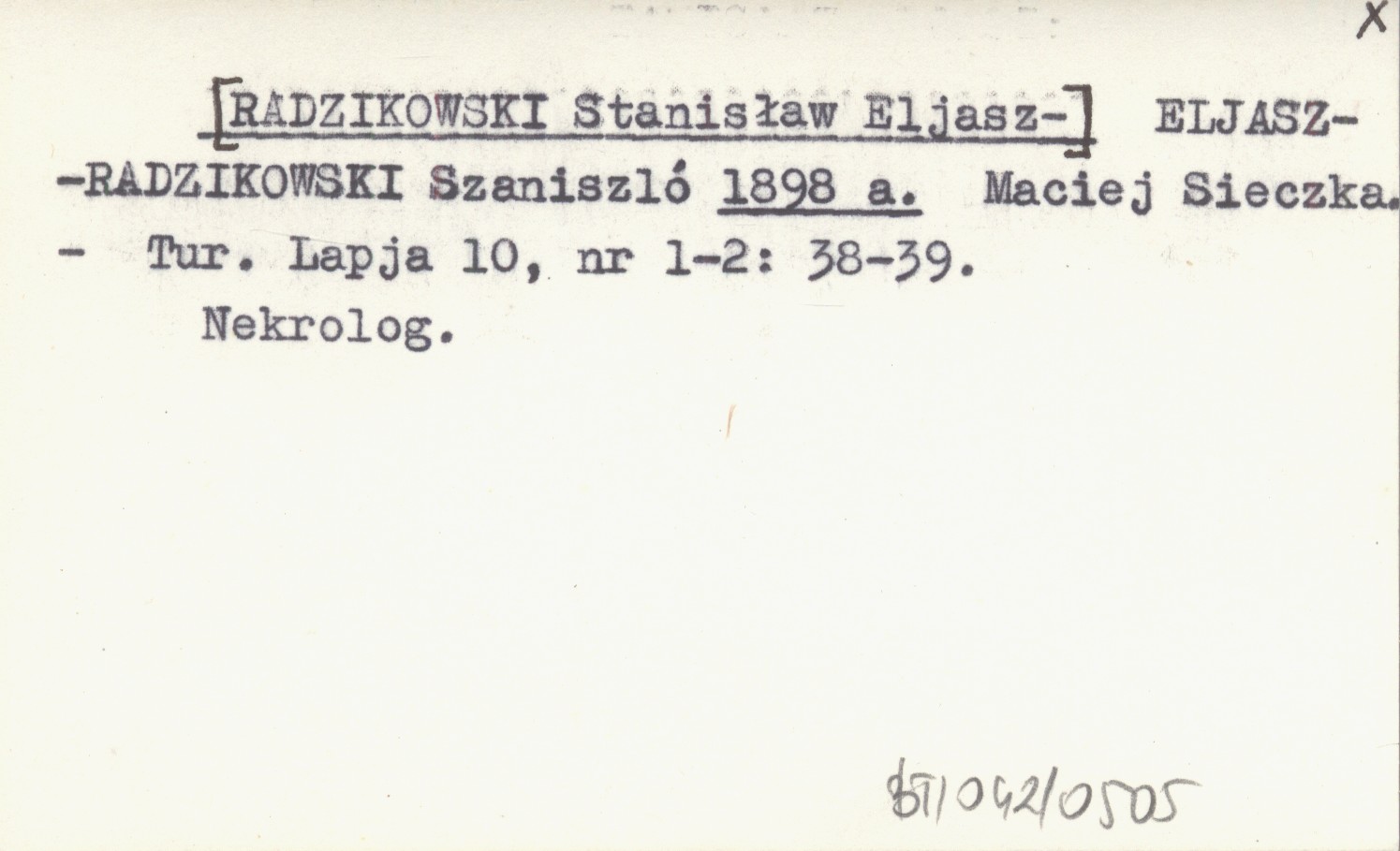 ELJASZ-RADZIKOWSKI Szaniszló [RADZIKOWSKI Stanisław Eljasz-] 1898 a Maciej Sieczka.