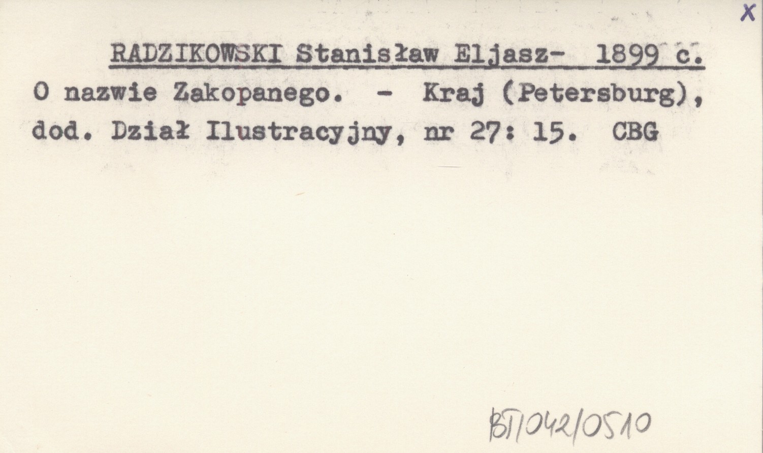 RADZIKOWSKI Stanisław Eljasz- 1899 c O nazwie Zakopanego.