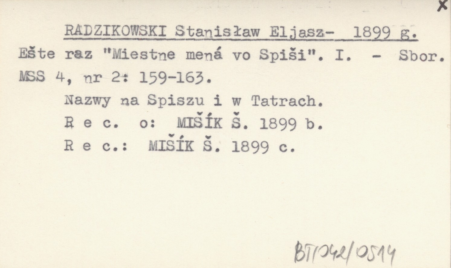 Nazwy na Spiszu i w Tatrach. Recenzja o: MI©ÍK ©. 1899 b.