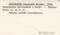 RADZIKOWSKI [Stanisław] Eljasz- 1898 b Bakteriológia a Tátrában.