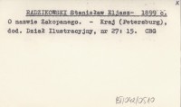 RADZIKOWSKI Stanisław Eljasz- 1899 c O nazwie Zakopanego.