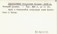 RADZIKOWSKI Stanisław Eljasz- 1899 e Verejná prosba.