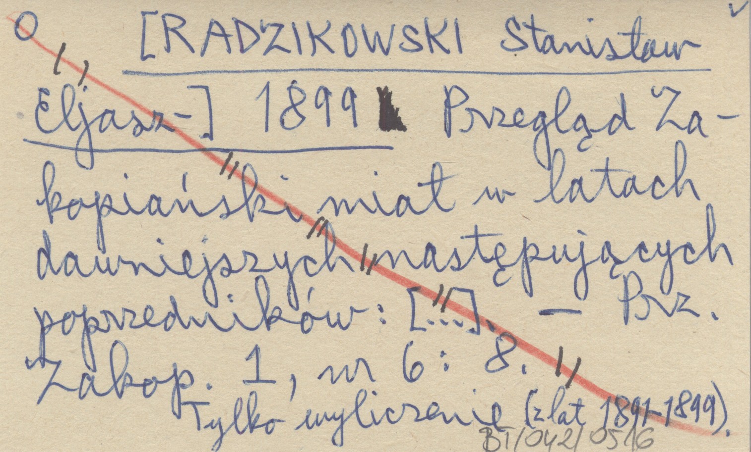 [RADZIKOWSKI Stanisław Eljasz-] 1899 Przegląd Zakopiański miał w latach dawniejszych następujących poprzedników: [...].