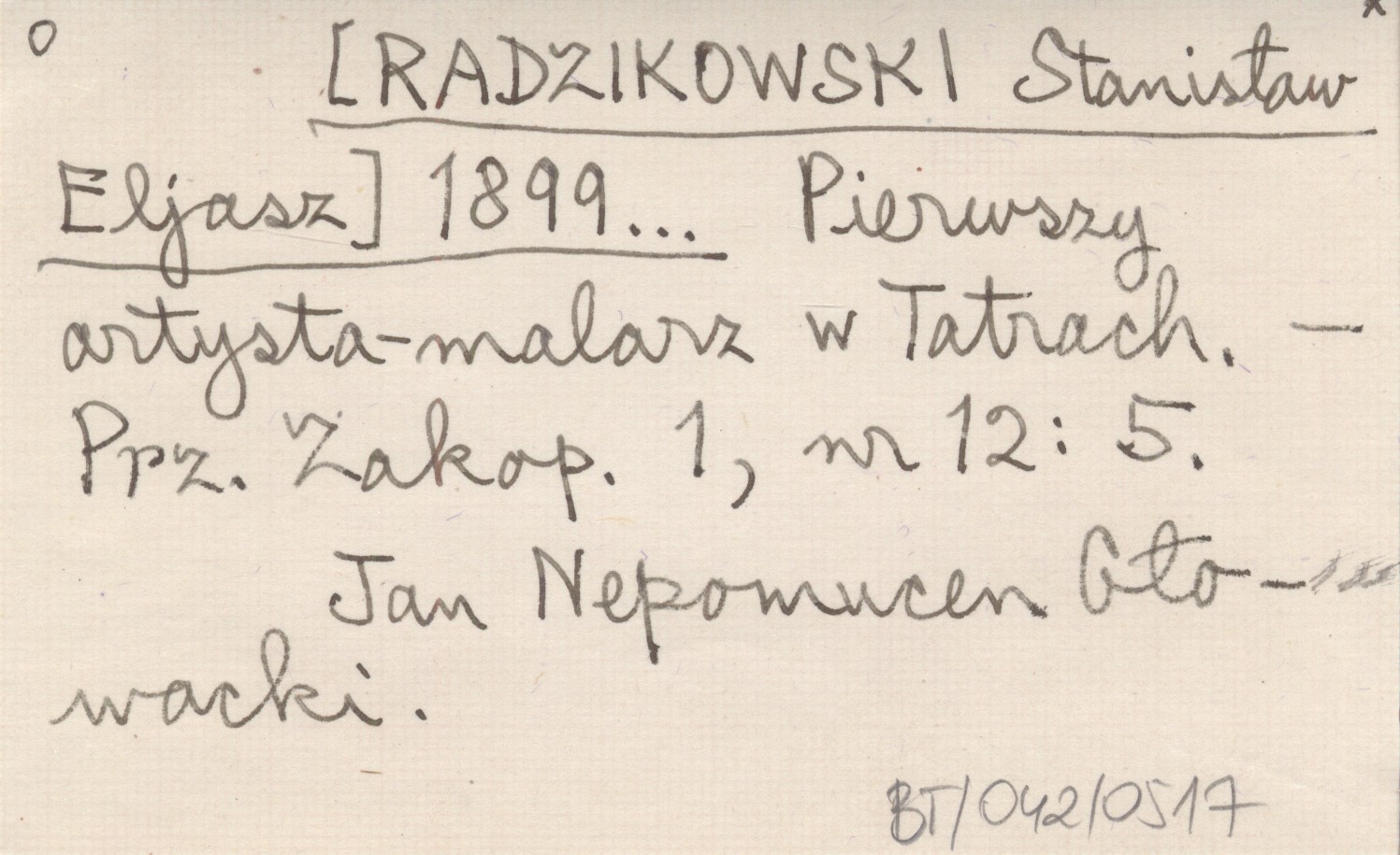 [RADZIKOWSKI Stanisław Eljasz-] 1899... Pierwszy artysta-malarz w Tatrach.
