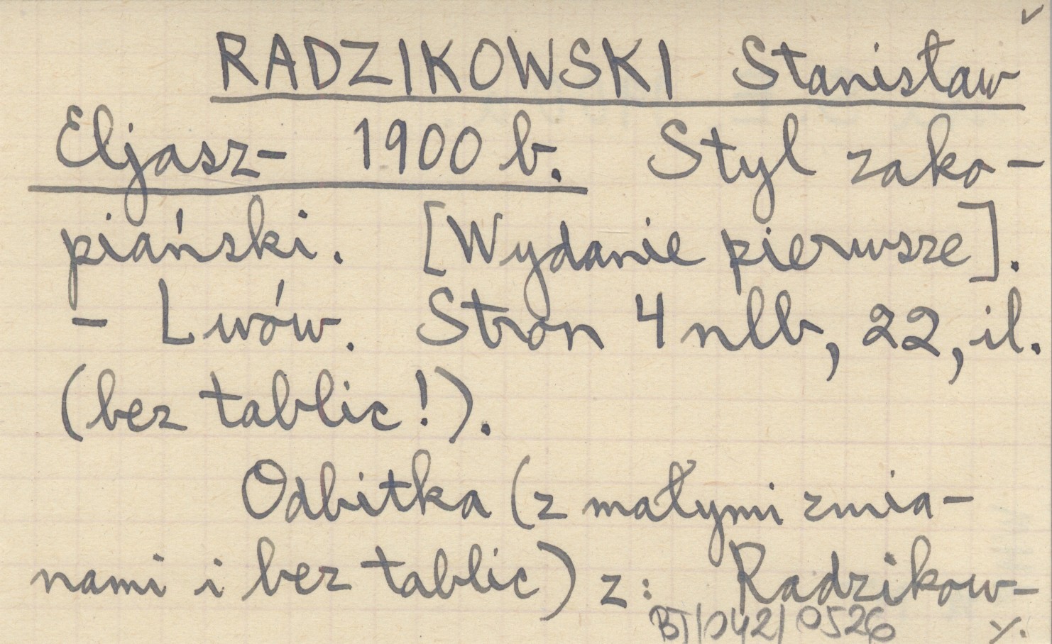 Lwów , [4], 22 s., il. Bez tablic! Odbitka (z małymi zmianami i bez tablic) z: RADZIKOWSKI S. E. 1900 a.