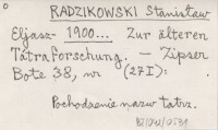 RADZIKOWSKI Stanisław Eljasz- 1900... Zur älteren Tátraforschung.