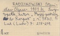 RADZIKOWSKI Stanisław Eljasz- 1901 b Świętopełk, autor "Mojej podróży do Karpat" z r. 1830.