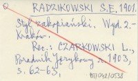 RADZIKOWSKI Stanisław Eljasz- 1900 Świeżo ukazał się [...].