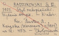 WYD: 2 Kraków , REC: CZARKOWSKI L., Poradnik Językowy r. 1903: 62-63 ; AUSTEN A., Książka (Warszawa) 1 (1901), nr 12: 453 ; CHOŁONIEWSKI A. 1901 b ; CZARKOWSKI L. 1903 ;