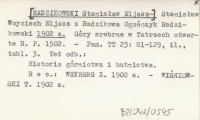 Stanisław Woyciech Eljasz z Radzikowa Ogończyk Rad [RADZIKOWSKI Stanisław Eljasz-] 1902 a Góry srebrne w Tatrzech otwarte R. P. 1502.