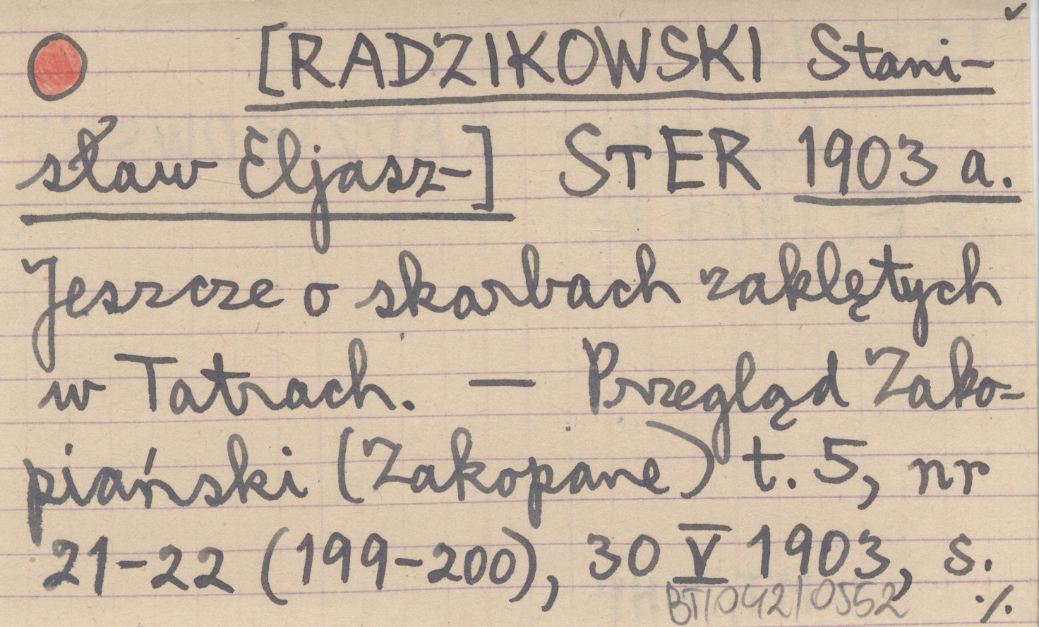 STER [RADZIKOWSKI Stanisław Eljasz-] 1903 a Jeszcze o skarbach zaklętych w Tatrach.