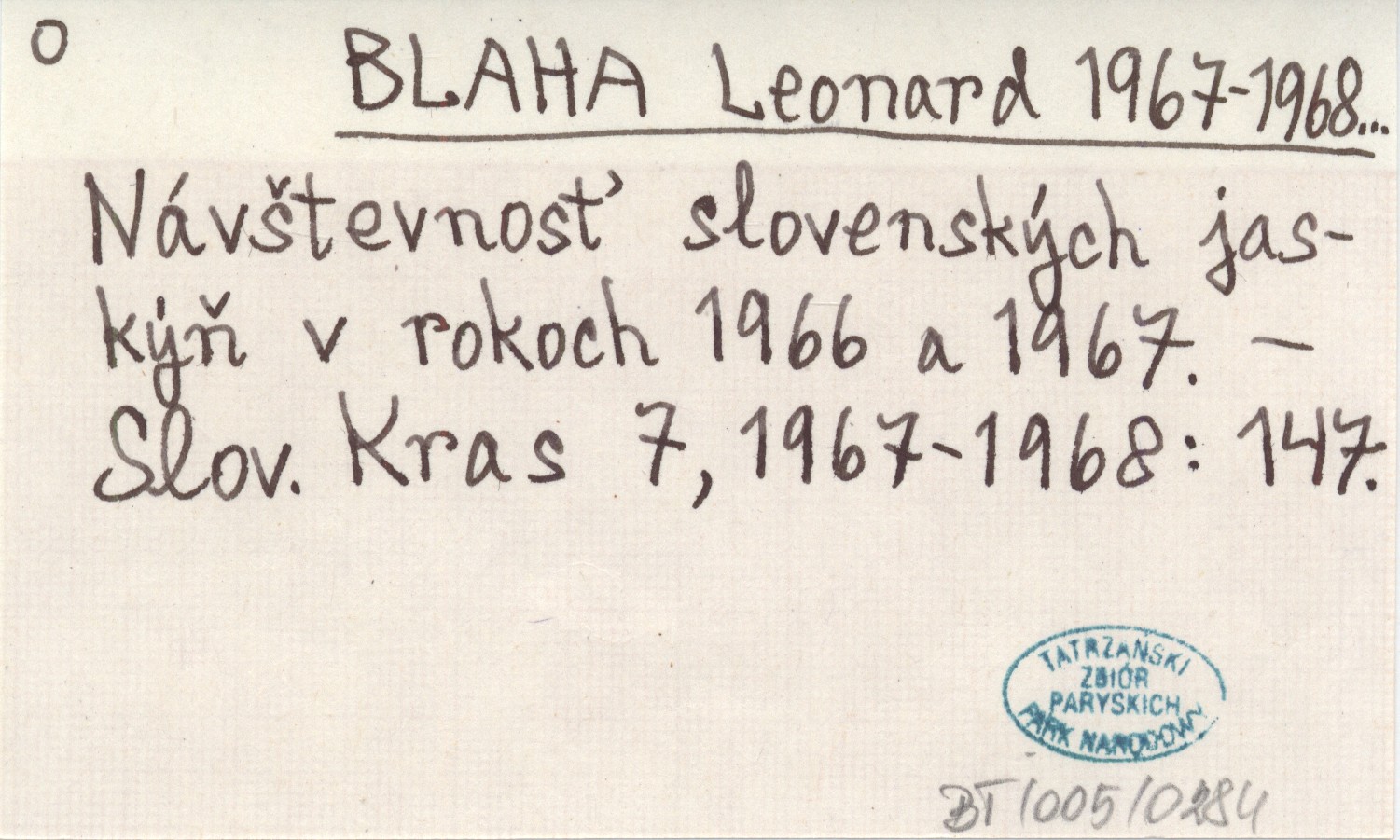 BLAHA Leonard 1967-1968... Návčtevnos» slovenskęch jaskęò v rokoch 1966 a 1967.