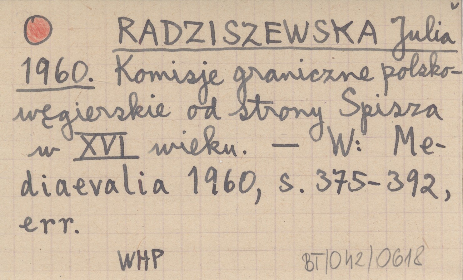 RADZISZEWSKA Julia 1960 Komisje graniczne polsko-węgierskie od strony Spisza w XVI wieku.