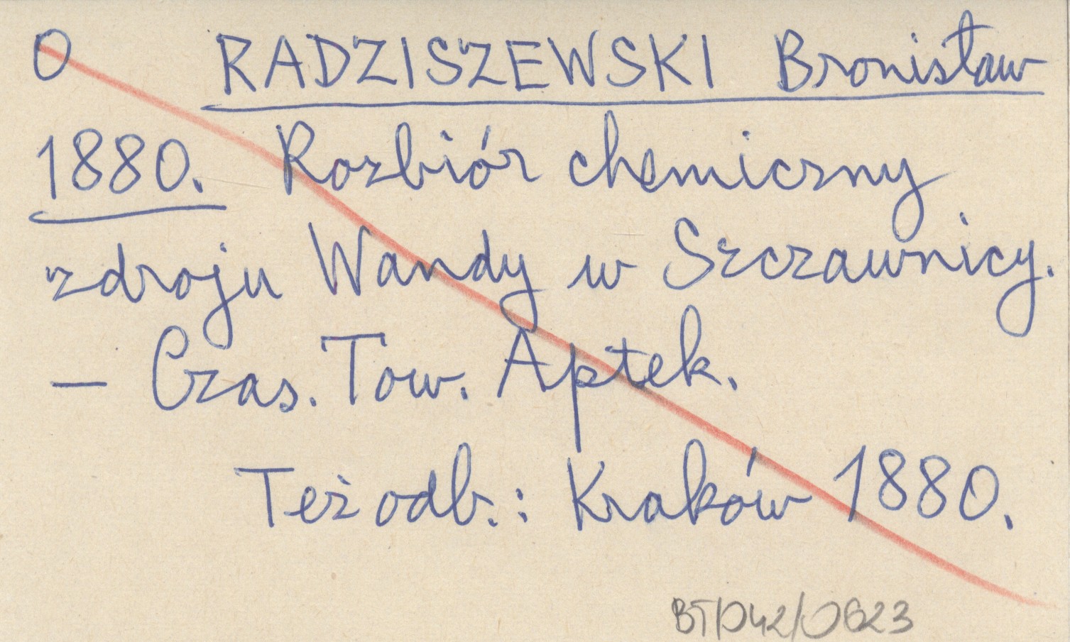 RADZISZEWSKI Bronisław 1880 Rozbiór chemiczny zdroju Wandy w Szczawnicy.