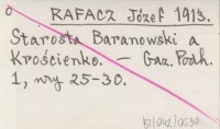 RAFACZ Józef 1913 Starosta Baranowski a Krościenko.