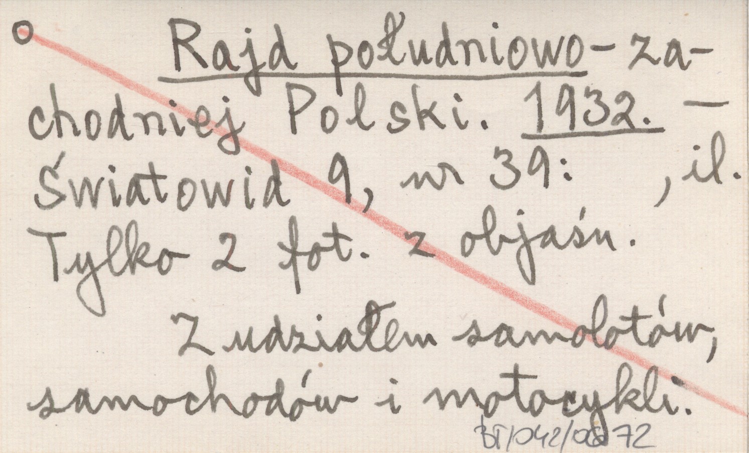 Światowid, 9, nr 39, il. Tylko 2 fot. z objaśn. Z udziałem samolotów, samochodów i motocykli.
