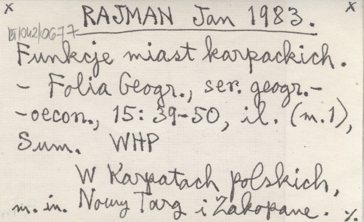 Folia Geographica, Ser. geogr.-oecon., 15: 39-50, il. (1 m.), Sum. W Karpatach polskich, m.in. Nowy Targ i Zakopane.