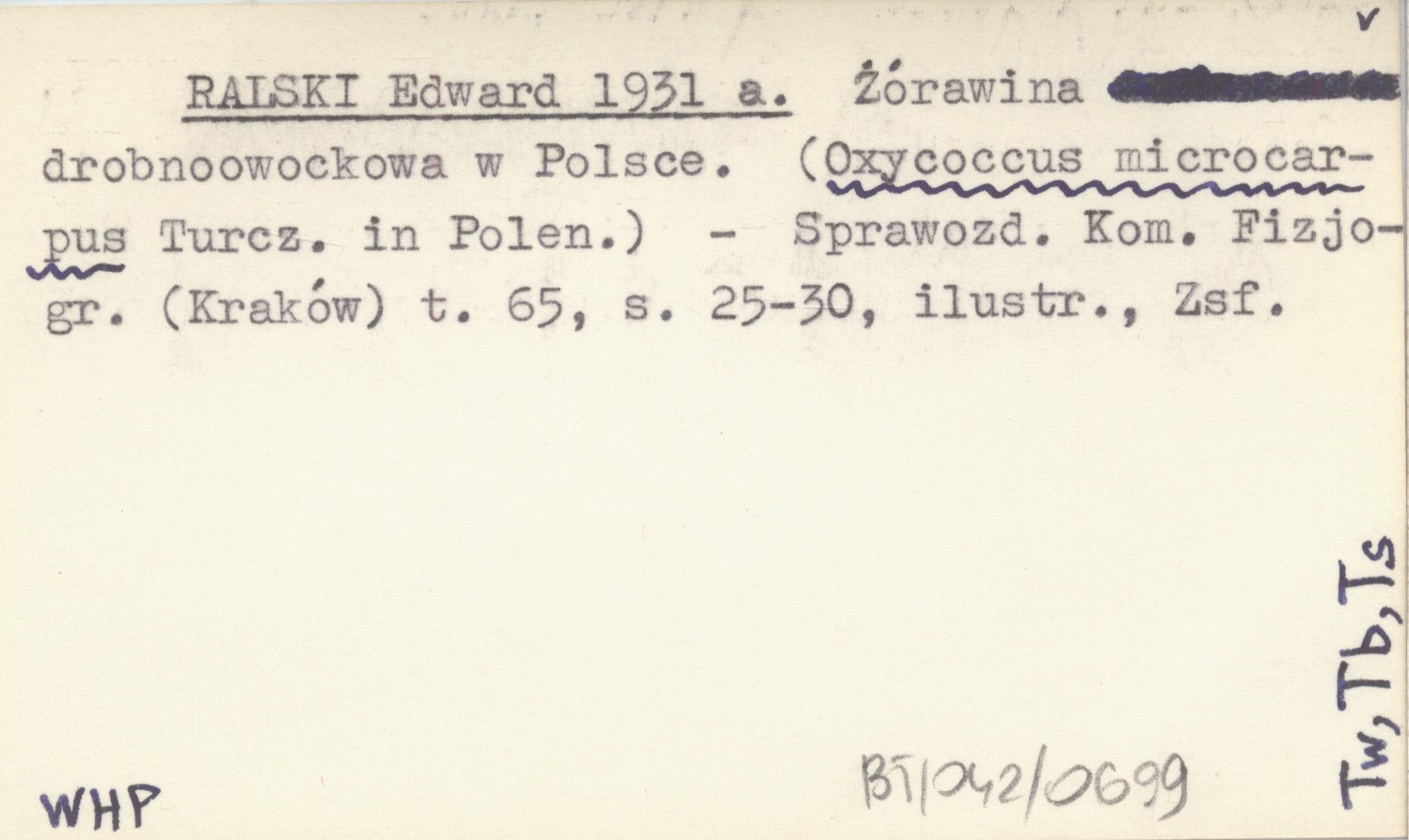 RALSKI Edward 1931 a Żórawina drobnoowockowa w Polsce. (Oxycoccus microcarpus Turcz. in Polen).