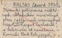 RALSKI Edward 1935 Stosunki pobierania niektórych składników mineralnych przez roślinność ważniejszych zespołów halnych Karpat Zachodnich, w zależności od nawożenia.