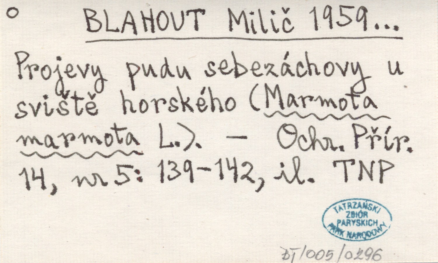 Projevy pudu sebezáchovy u sviště horského (Marmota marmota L.).