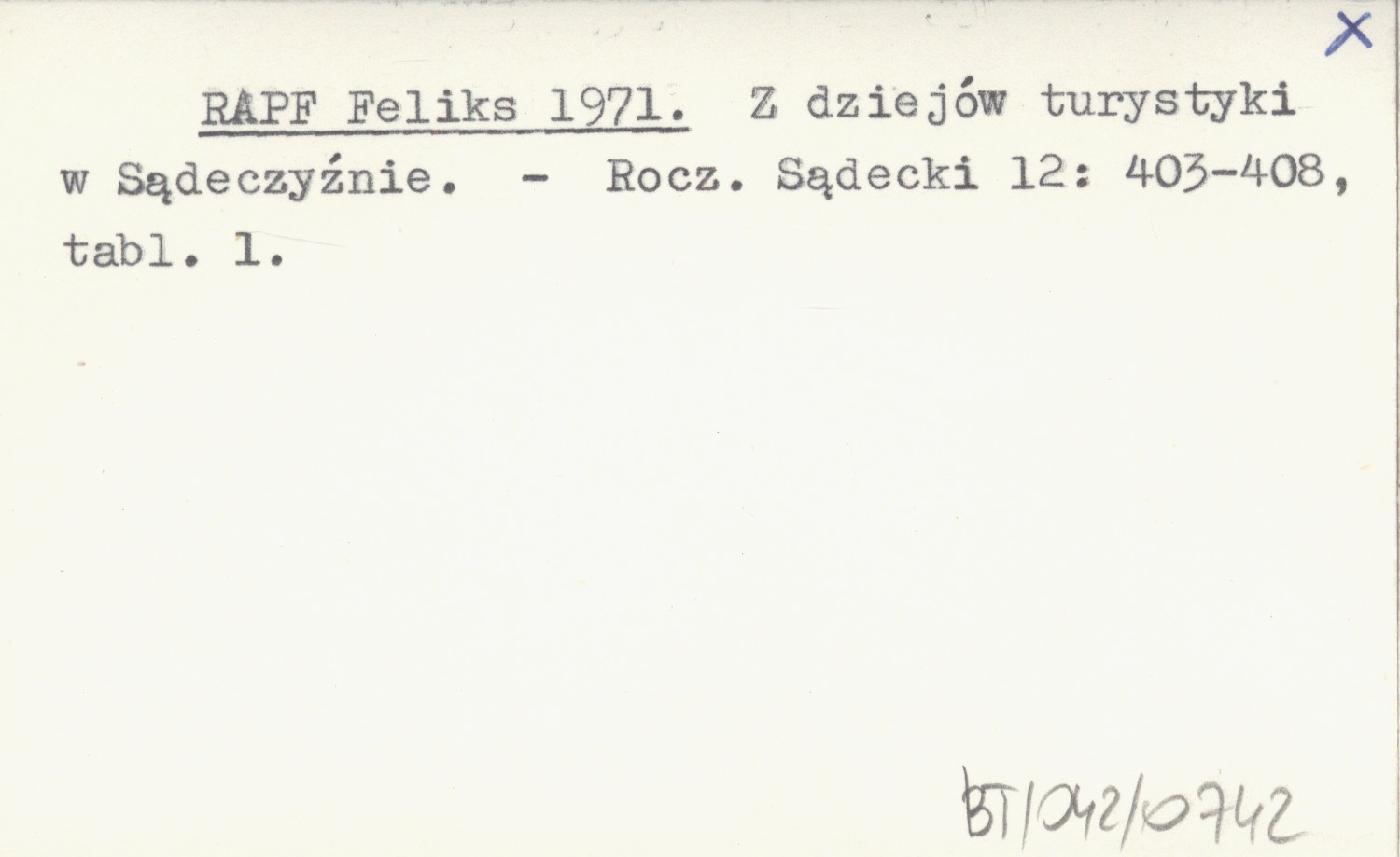 RAPF Feliks 1971 Z dziejów turystyki w Sądeczyźnie.