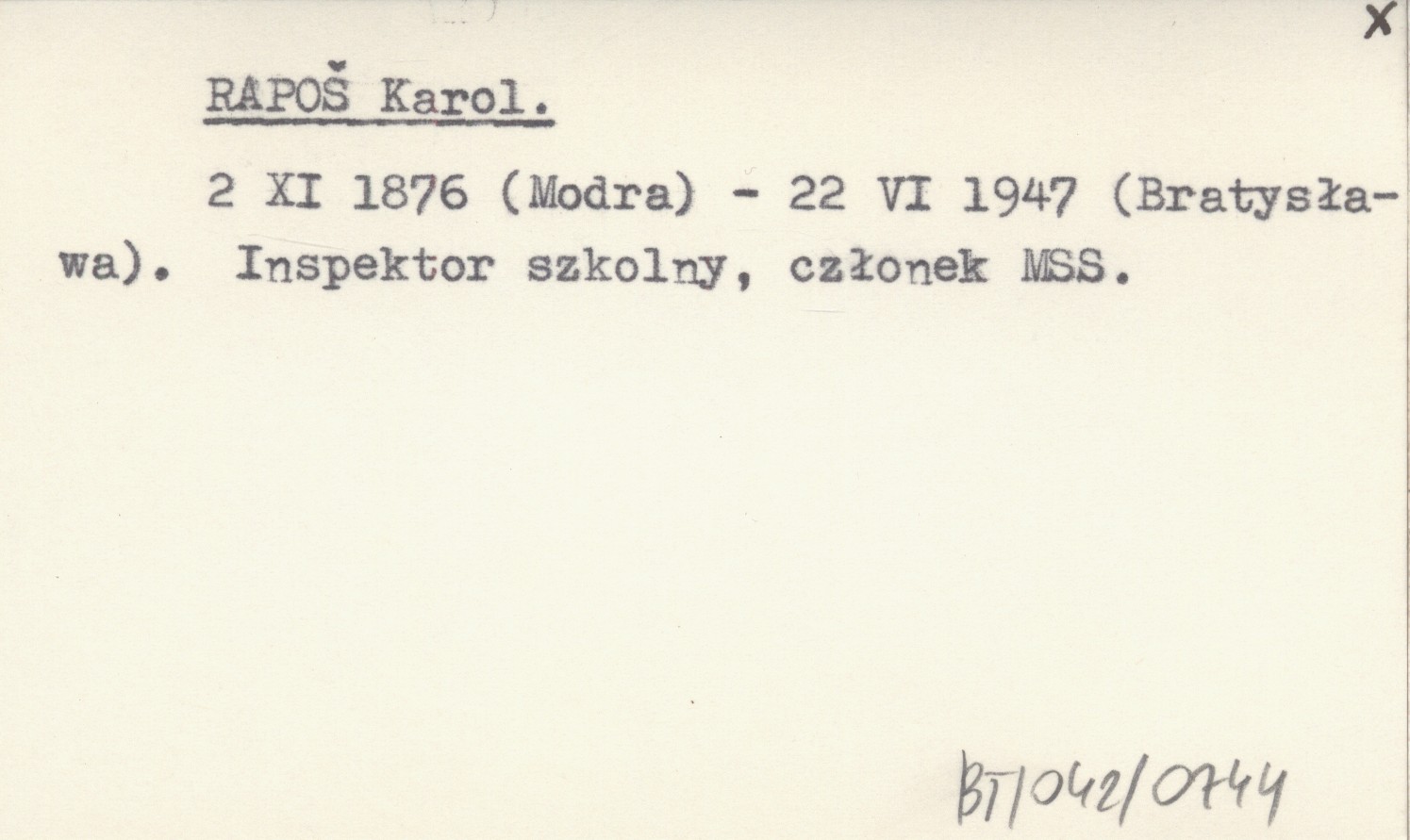 2 XI 1876 (Modra) - 22 VI 1947 (Bratysława). Inspektor szkolny, członek MSS.