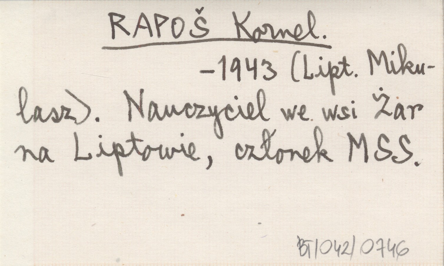 -1943 (Lipt. Mikulasz). Nauczyciel we wsi Żar na Liptowie, członek MSS.