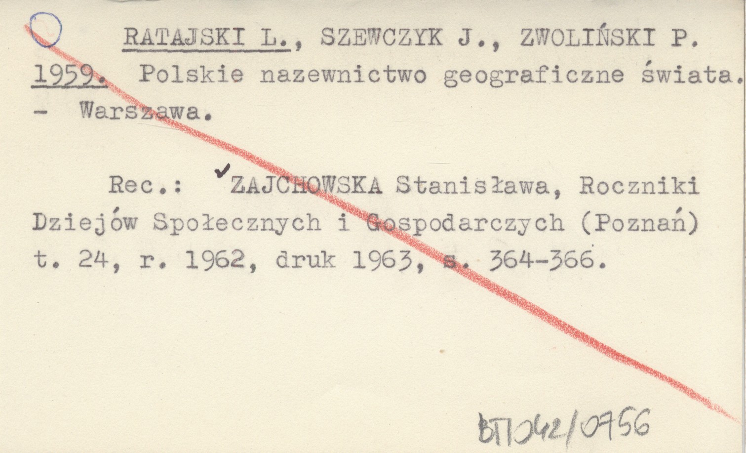 RATAJSKI L. SZEWCZYK, J. ; ZWOLIŃSKI, P. ; 1959 Polskie nazewnictwo geograficzne świata.