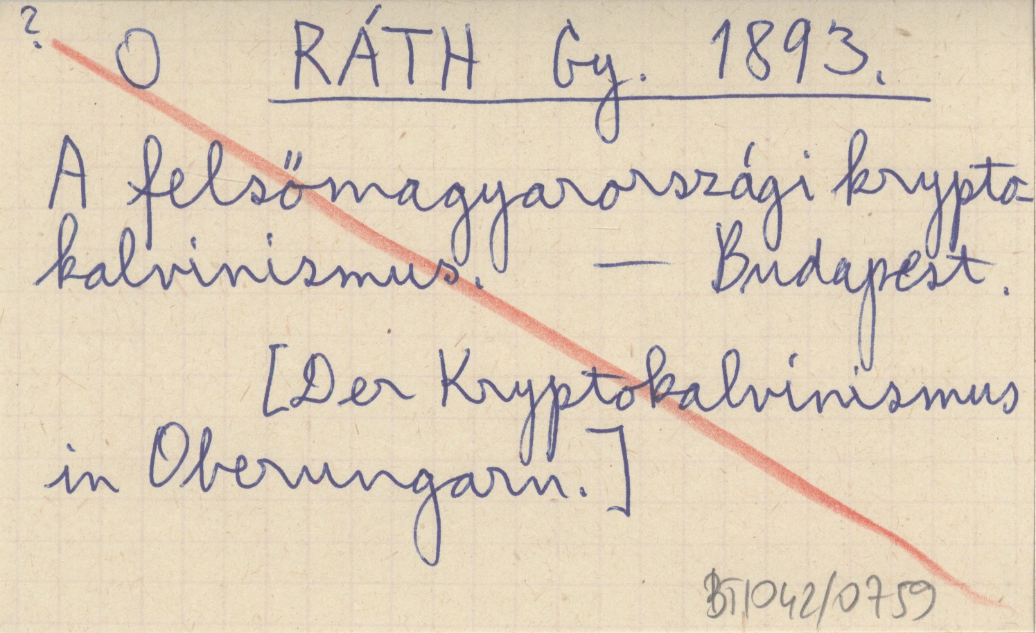 RÁTH Gy. 1893 A felsőmagyarországi kryptokalvinismus.