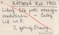 RÁTHOVÁ Ruľ. 1903 Lidový lék proti vrozeným souchotinám.