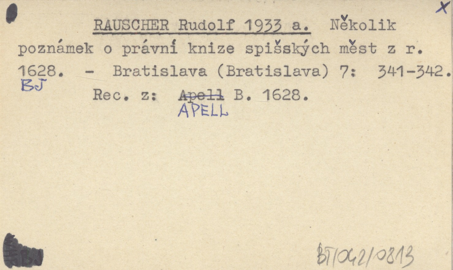 RAUSCHER Rudolf 1933 a Několik poznámek o právní knize spišských měst z r. 1628.