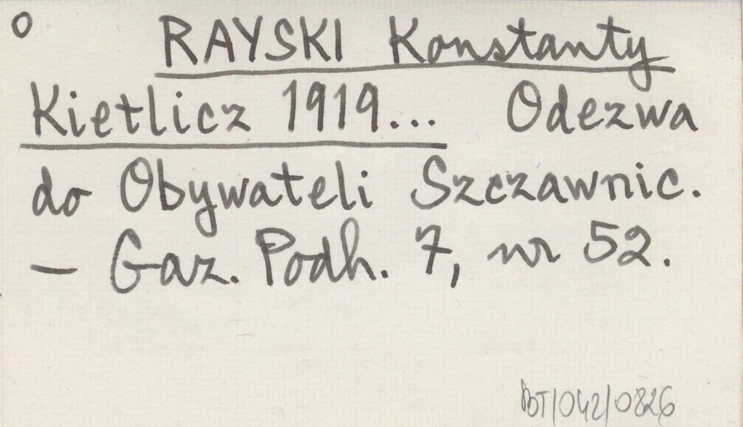 RAYSKI Konstanty Kietlicz 1919... Odezwa do Obywateli Szczawnic.