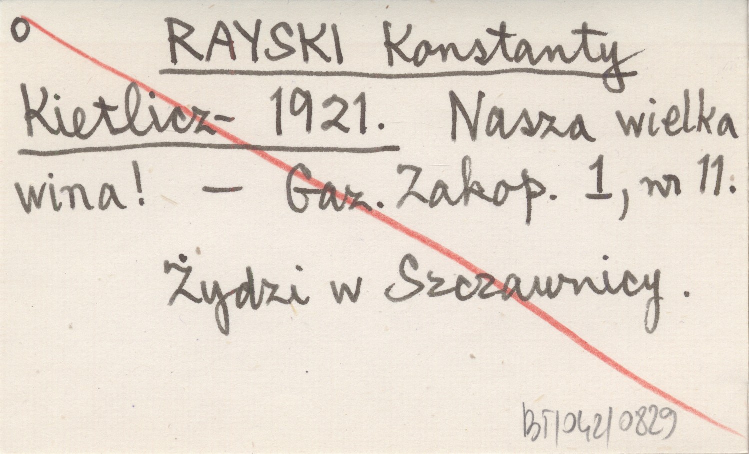 RAYSKI Konstanty Kietlicz- 1921 Nasza wielka wina!