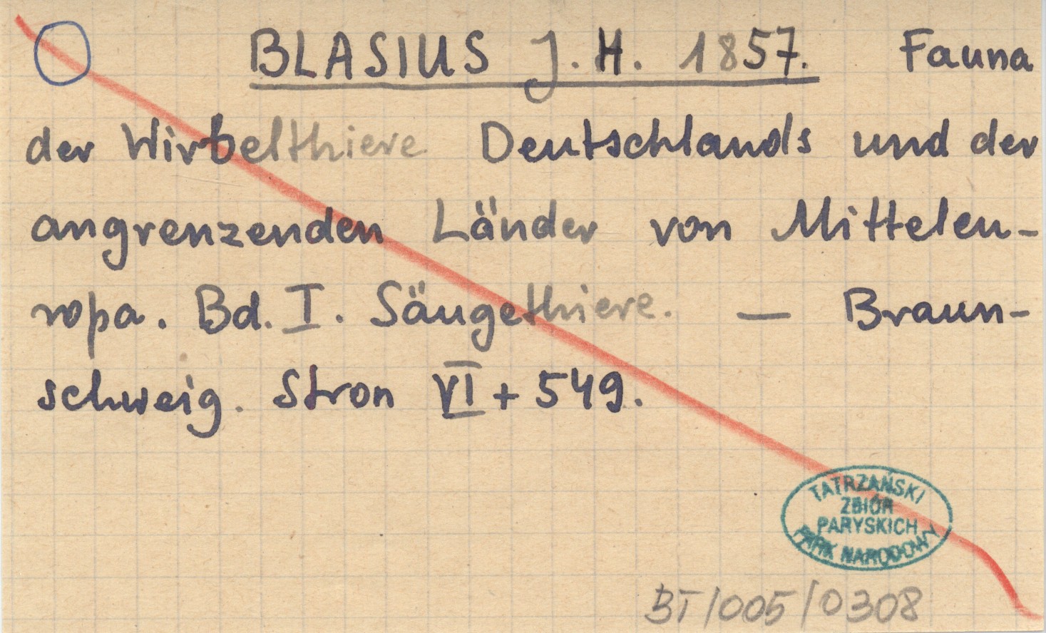 BLASIUS J. H. 1857 Fauna der Wirbelthiere Deutschlands und der angrenzenden Länder von Mittelenropa. Bd. I. Säugethiere.
