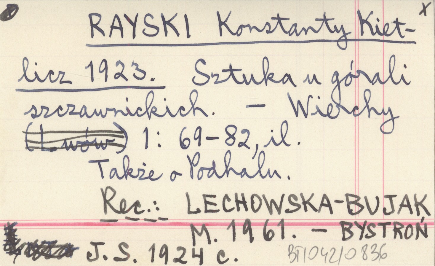 Wierchy, 1: 69-82, il. Także o Podhalu. REC: LECHOWSKA-BUJAK M. 1961 ; BYSTROŃ J. S. 1924 c ;