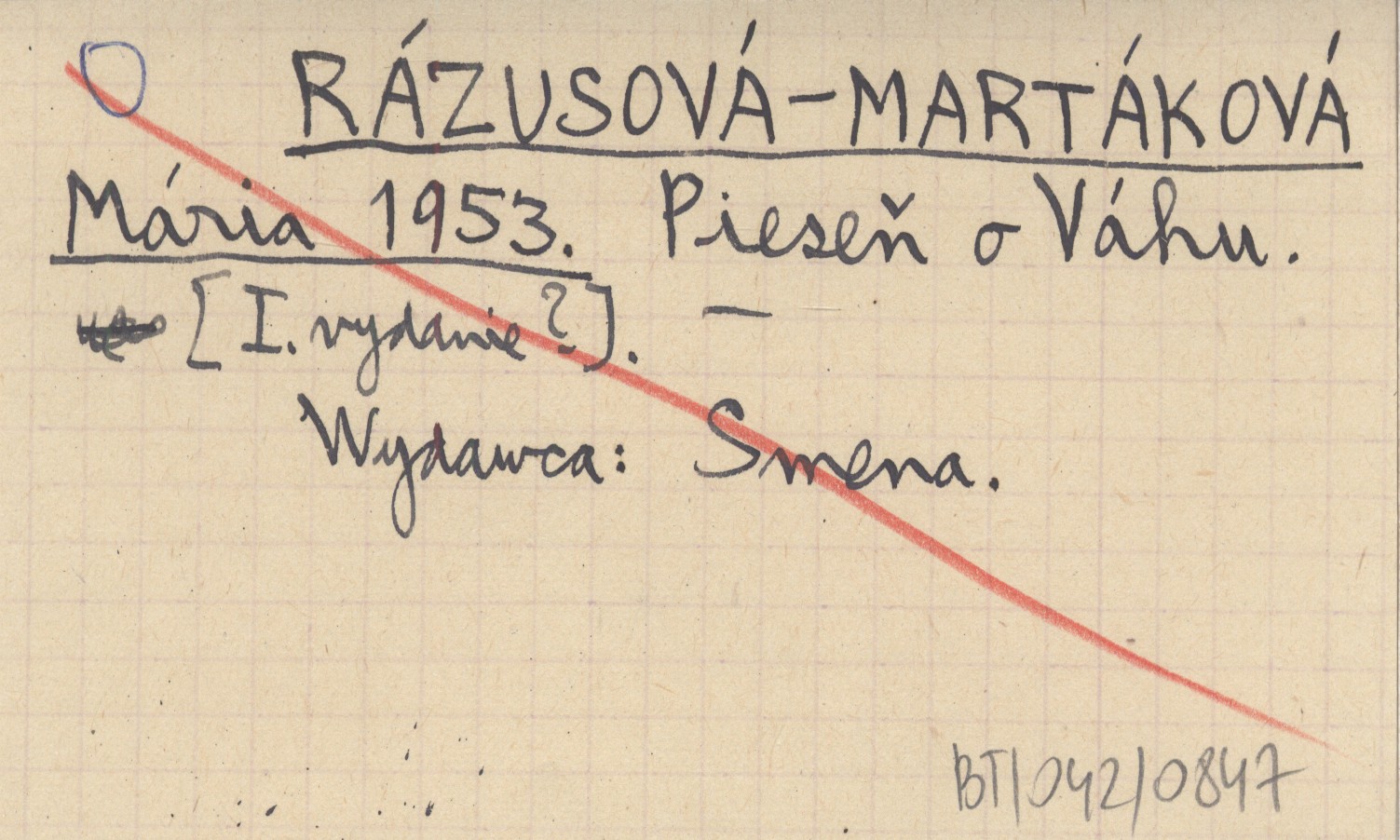 RÁZUSOVÁ-MARTÁKOVÁ Mária 1953 Pieseň o Váhu. [I. vydanie ?].