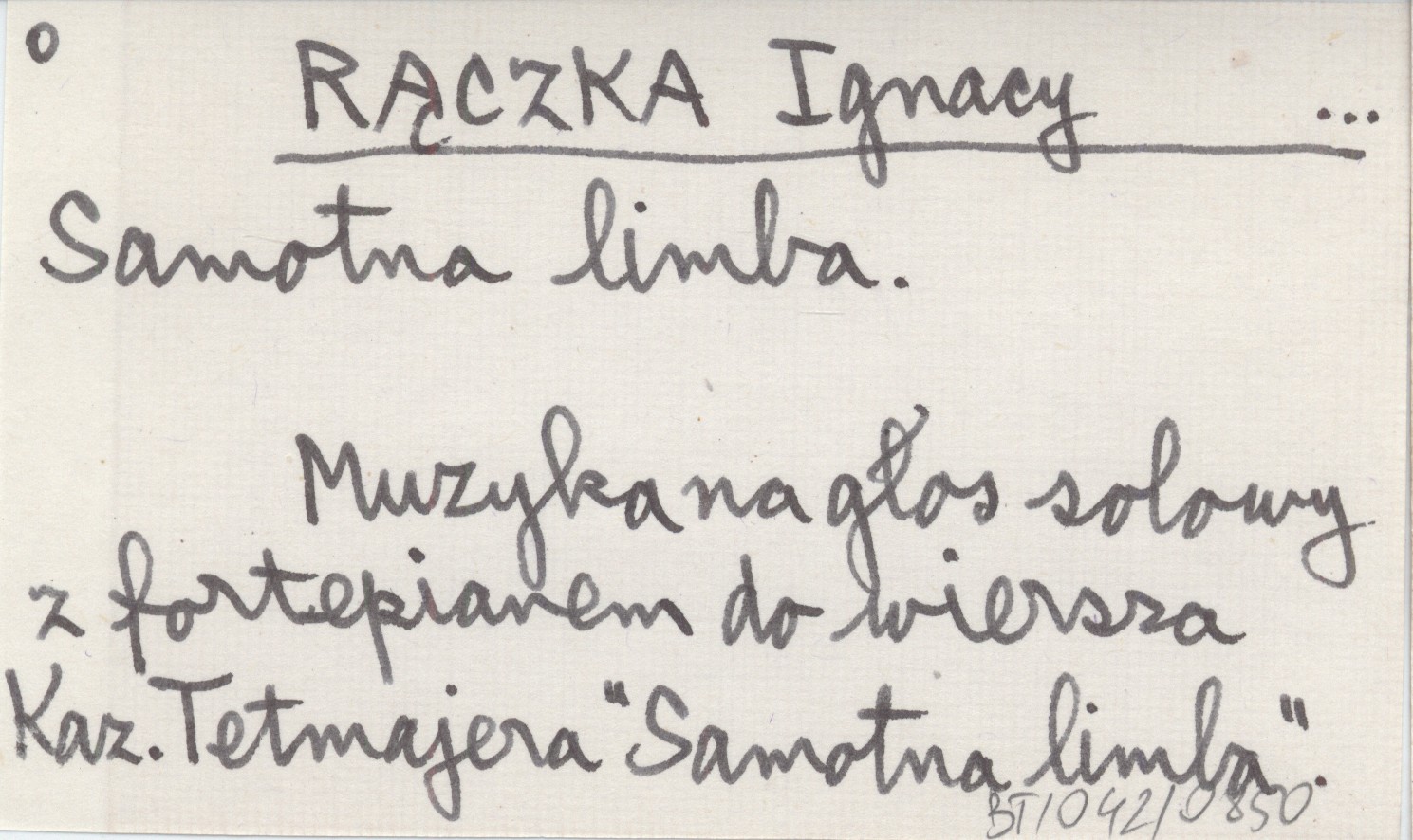 Muzyka na głos solowy z fortepianem do wiersza Kaz. Tetmajera "Samotna limba".