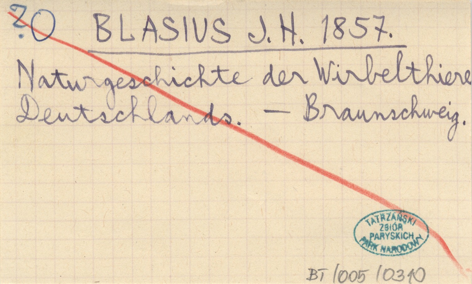 BLASIUS J. H. 1857 Naturgeschichte der Wirbelthiere Deutschlands.
