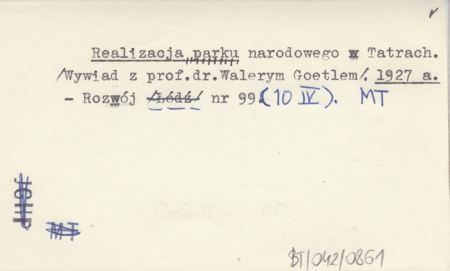 Realizacja parku narodowego w Tatrach. (Wywiad z prof.dr.Walerym Goetlem). 1927 a